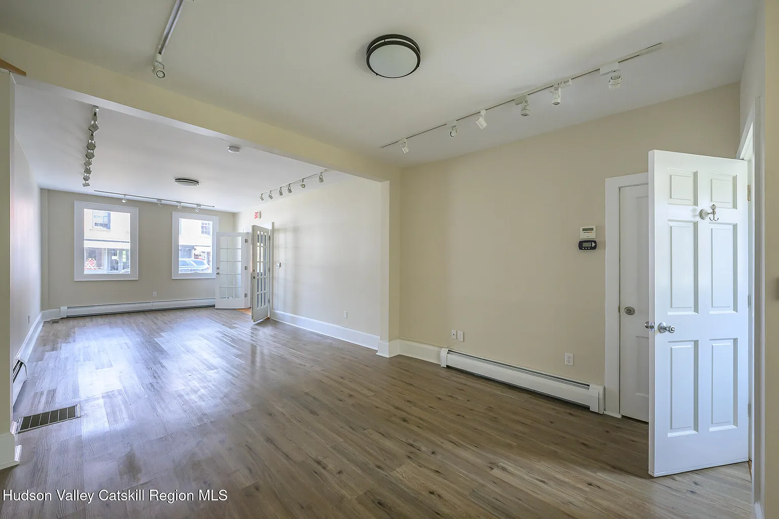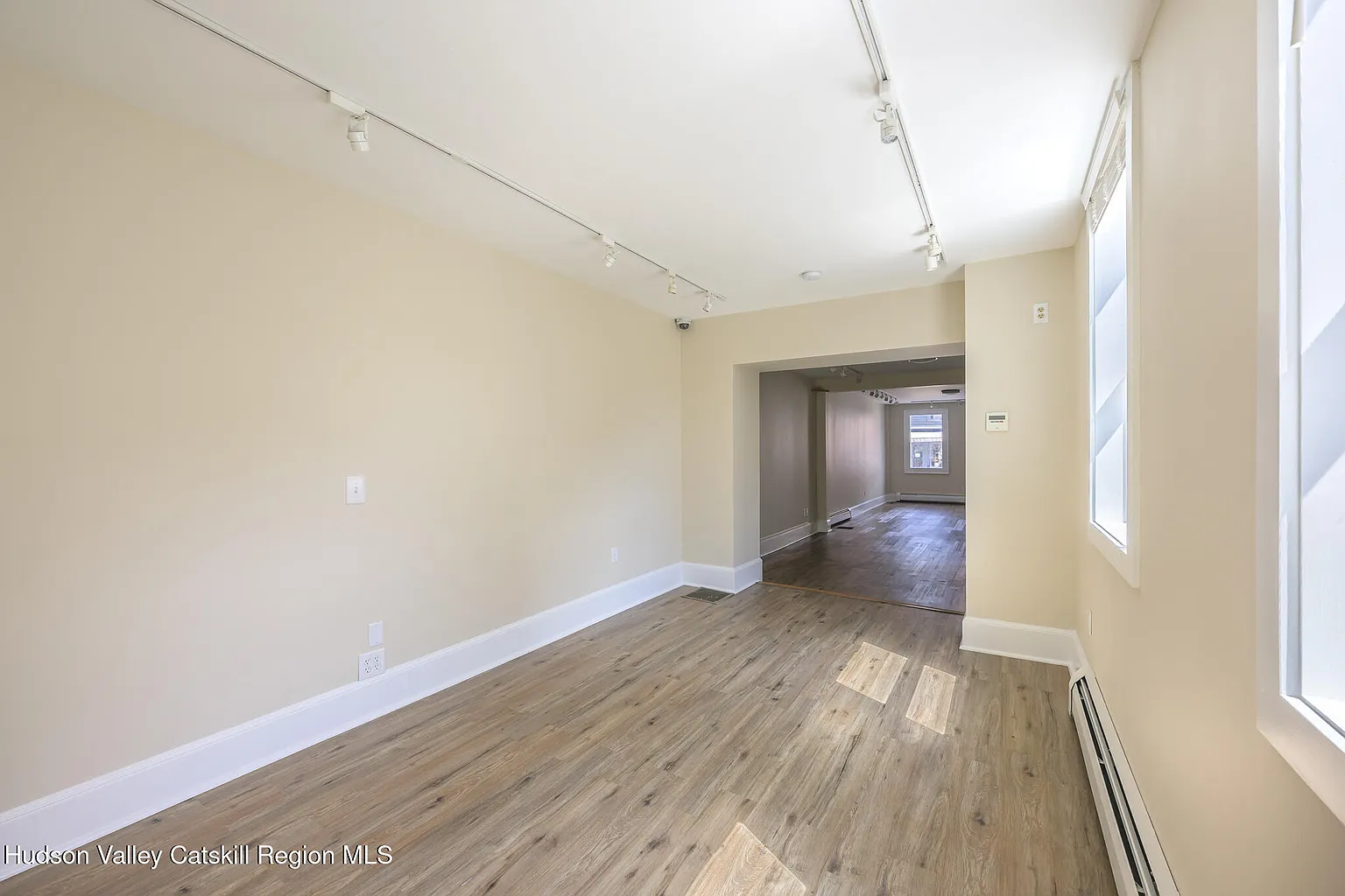 Spacious, light-filled live/work contemporary home on prime Warren Street location in the heart of Hudson NY. This well-maintained row house offers approx. 2,300 sf of living space across two floors, with a gorgeous 2nd floor deck overlooking a secluded fenced rear garden, and distant Catskill mountain views.