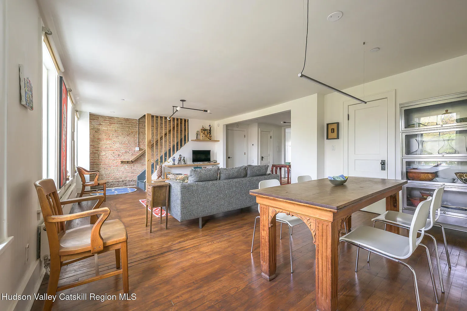 The spacious residential upper level extends over 3 floors covering approx. 2,800 sf of modern, light-filled contemporary living in the heart of thriving Hudson, NY. These floors are currently configured as a luxurious 3rd/4th floor 2-bedroom duplex for the owner, and a successful 2nd floor 2-bedroom rental/Airbnb apartment. Enjoy the income from the current layout or combine both apartments to create one of the grandest triplex apartments in Hudson.