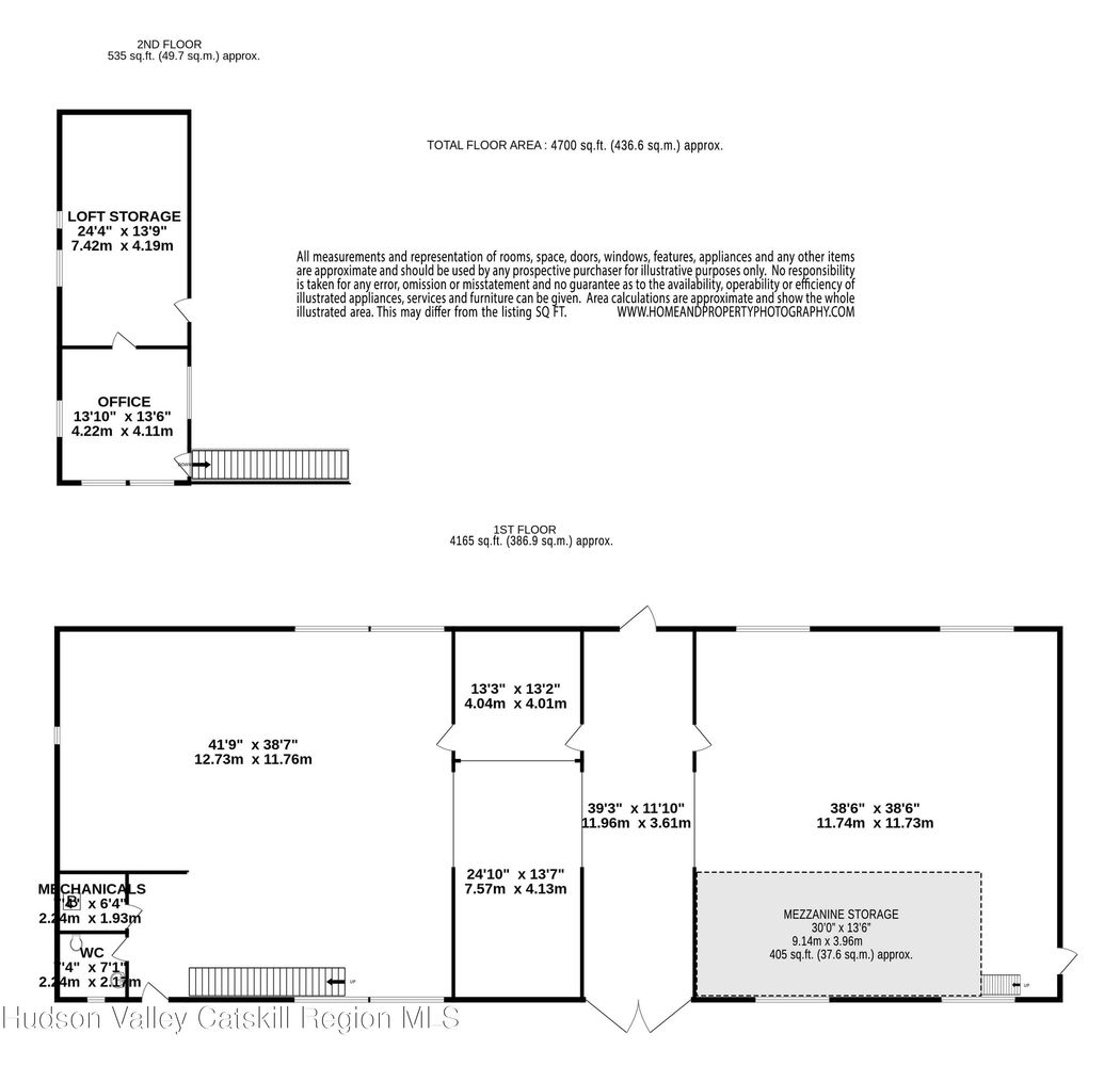 • Warehouse / Studios – approx. 4,165 sf plus additional mezzanine offices and storage totaling 940 sf